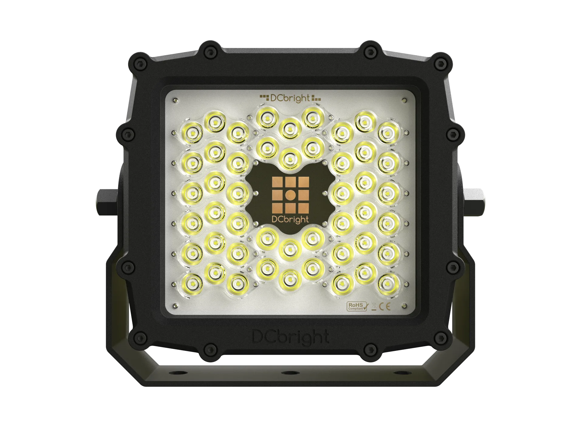 Niet-verblindende floodlight voor grotere machines, lichtmasten en werkzones waar gericht licht zonder lichthinder vereist is.